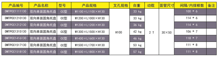 CC型—雙向單面圓角鋼托盤 產(chǎn)品用途:主要為袋裝的軟包裝大批量物品存儲和周轉(zhuǎn)。改變老式四個尖角焊接,采用圓角工藝,主要防止麻袋在放置時不容易刮破。